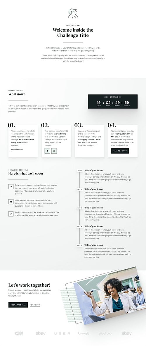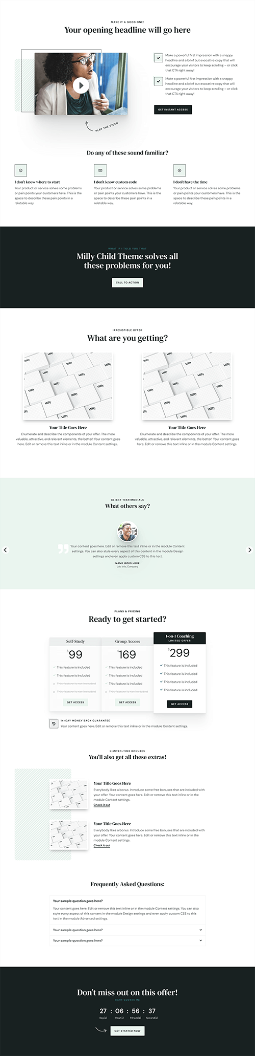 Meet Milly – a modern, minimalistic, and pixel-perfect child theme for Divi. Check out all the amazing layouts and features and get your website up and running with just a few clicks!